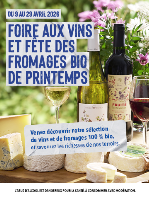 Du 9 au 29 avril inclus, c'est la foire aux vins et fromages bio