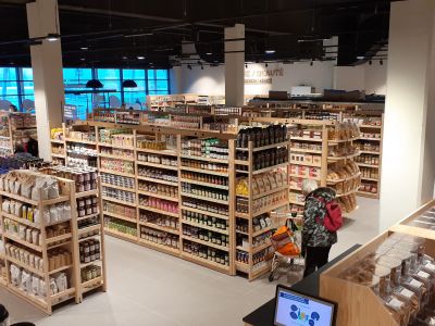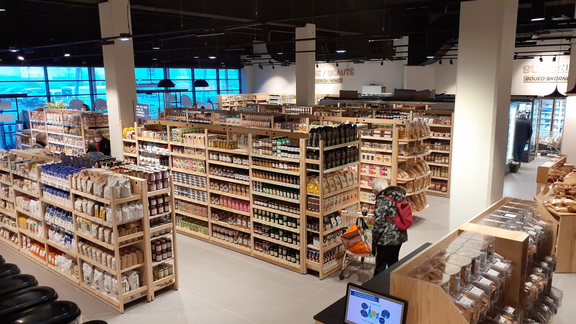 Un axe fort a été donné au vrac avec un rayon de 240 références (hors fruits et légumes de saison), vous y retrouverez également une gamme complète pour réaliser des courses 100% bio, avec notamment un joli service arrière avec pain, fromage à la coupe et une partie traiteur.