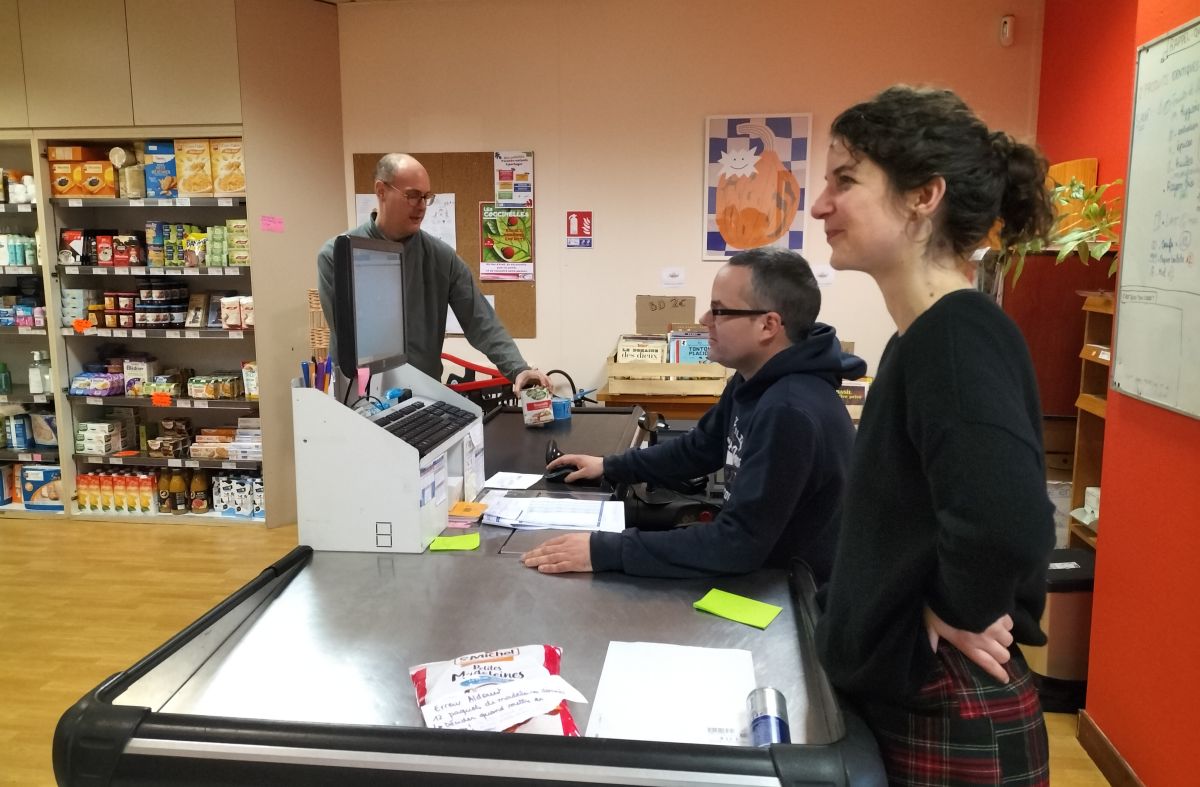 Nous faisons aussi de la sensibilisation, des ateliers (cuisine…), nous informons sur d’autres activités qui ont lieu dans le quartier. C’est aussi un lieu de vie sociale, pour les bénévoles mais aussi pour les clients avec la présence d’un coin café qui permet de rester discuter autour d’une boisson chaude gratuite, d’échanger des recettes, de rencontrer des partenaires qui viennent accompagner les clients dans leurs recherches d’emploi ou d’autres démarches comme récemment le chèque énergie par exemple.