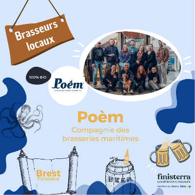 Poèm est une brasserie artisanale bio installée depuis 6 ans entre les deux ports de Brest. Elle propose 8 recettes permanentes toute l’année, une recette éphémère tous les deux mois ainsi qu’une limonade. Poèm s’est développée en circuit court, soutient les productions et l’économie locale et solidaire, ainsi que les animations autour de la mer. Fait rare, ses matières premières, en plus d’être bio sur l’ensemble de sa production, sont 100 % bretonnes (sauf parfois quelques houblons pour ses éphémères, ses levures & les ingrédients de sa limonade qui sont exotiques à défaut d’être nationalisés bretons). Ses bières ne contiennent aucun produit chimique et ne sont pas pasteurisées. Elles sont clarifiées naturellement et sont totalement véganes : chaque brassin est un vrai millésime !