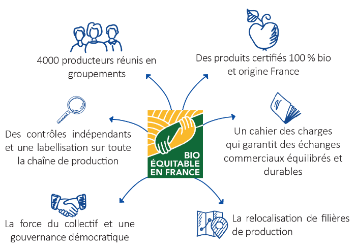 Bio Équitable en France est une association portée par plusieurs organisations de producteurs engagés dans l’agroécologie, alliés à des entreprises de la bio conscientes de leur responsabilité sociétale, dont Biocoop. Vous pourrez donc retrouver le logo Bio Équitable en France sur les produits à marque Biocoop.